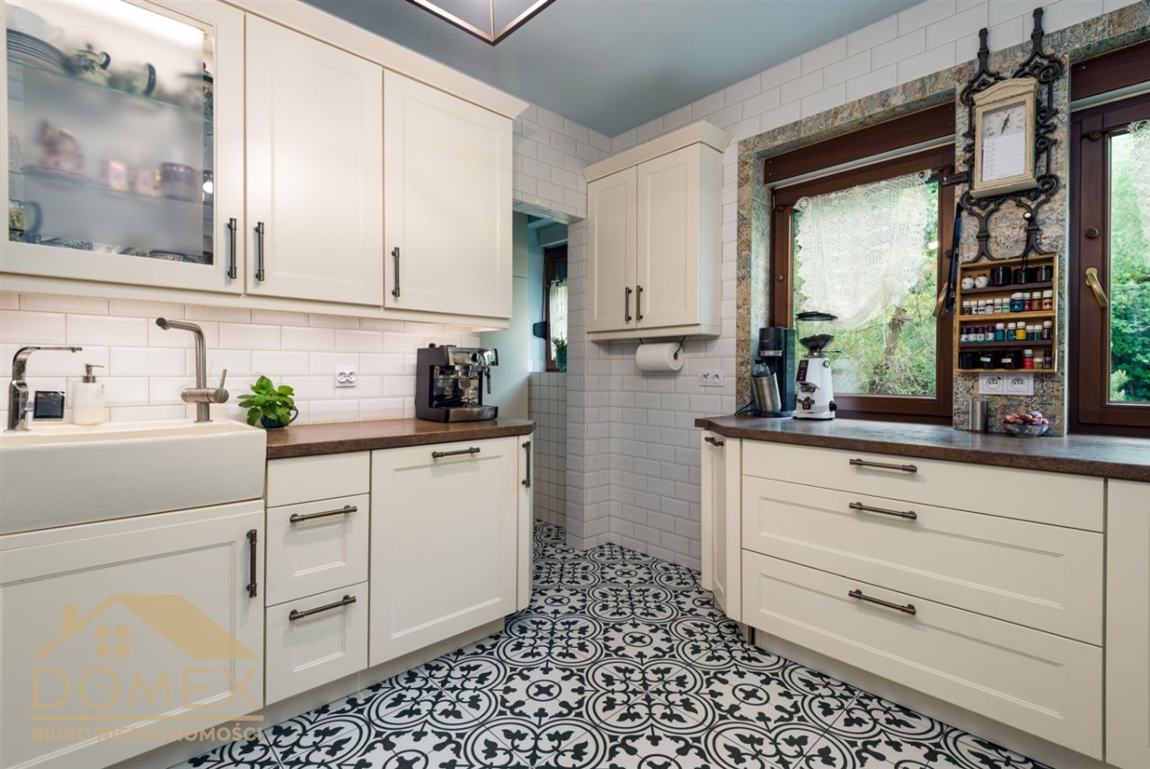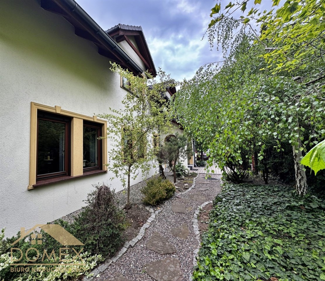 Powierzchnia użytkowa to ok.205m2 dodatkowo dom posiada duży garaż dwustanowiskowy. Dom z roku 2004 zbudowany z ytongu z dachem krytym dachówką ceramiczną, ogrzewany pompą ciepła, z praktyczną przydomową oczyszczalnią ścieków, ogrzewanie w znacznej części podłogowe plus grzejniki. Dom posiada podpiwniczenie (ok. 60m2). W cenie pozostają meble kuchenne, reszta umeblowania do uzgodnienia.