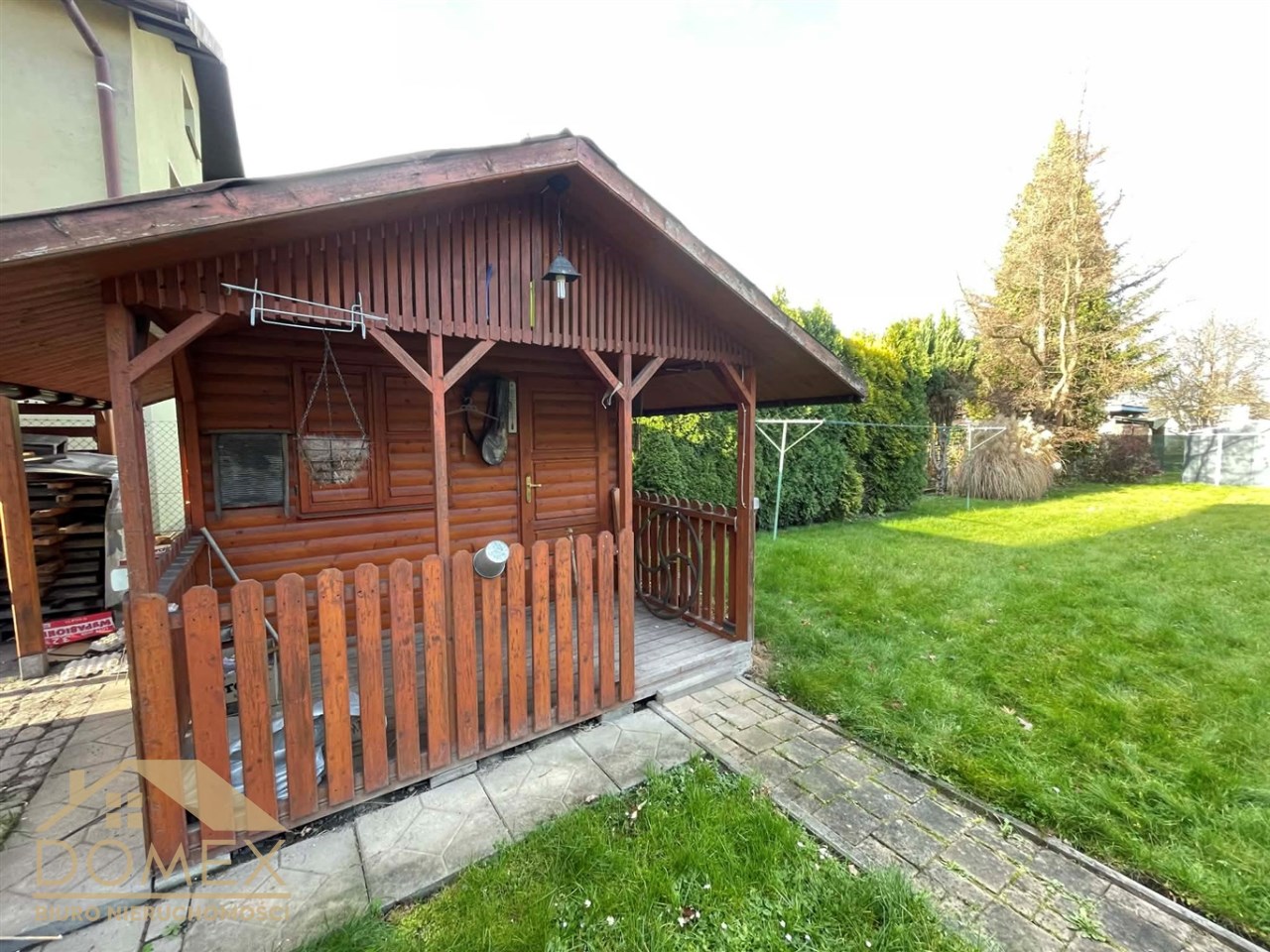 • mały drewniany domek – praktyczny magazyn lub miejsce zabaw