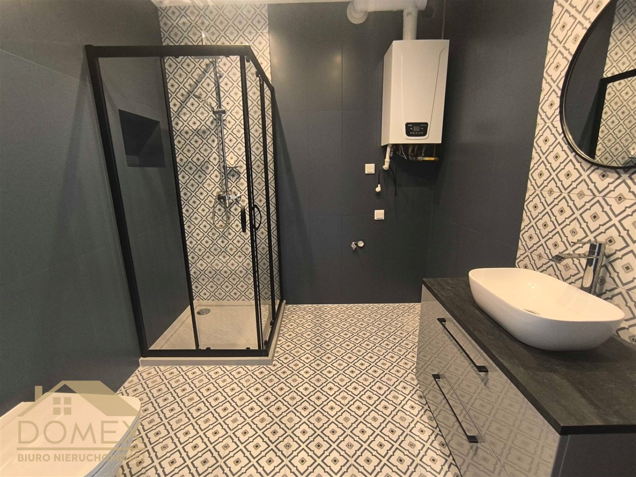 -łazienka z WC,funkcjonalnym wyposażeniem i piecem gazowym