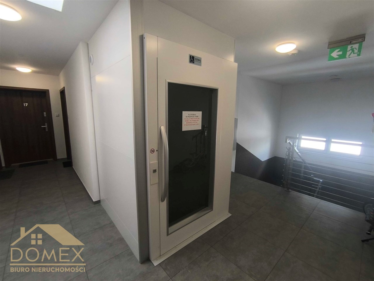 Blok,w którym znajduje się apartament wyposażony jest w windę dostosowaną do potrzeb osób niepełnosprawnych.
