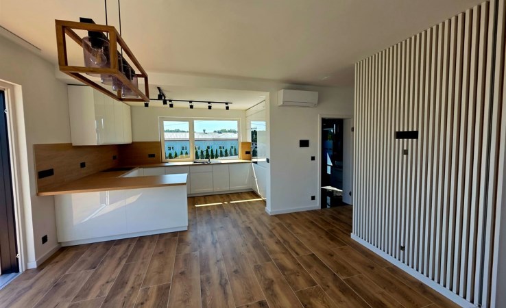 Wnętrze zostało urządzone w standardzie PREMIUM, z dbałością o detale, kolorystykę i funkcjonalność. Naturalne materiały, spójny styl oraz dobre światło tworzą przestrzeń, w której po prostu chce się być.