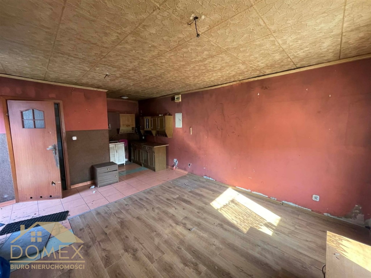 Na sprzedaż budynek z lat 70. o powierzchni ok. 50 m², składający się z przestronnego salonu oraz dodatkowego, mniejszego pokoju. Do nieruchomości przynależy również garaż.