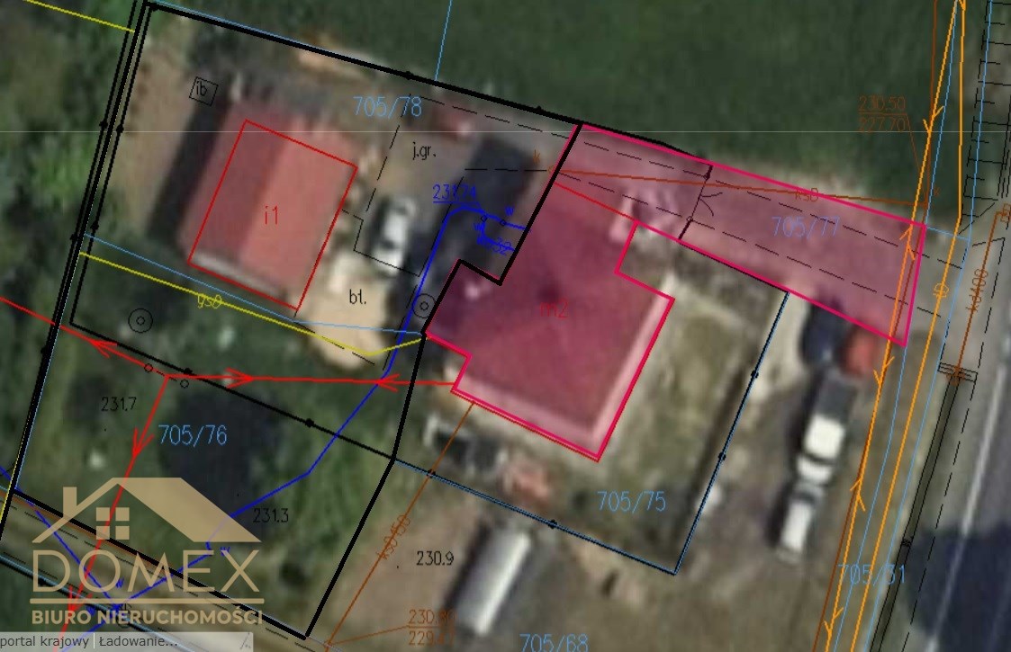 część zaznaczona na czerwono stanowi część wspólną współwłaścicieli nieruchomości.