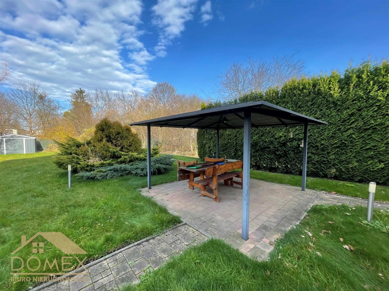 • mały drewniany domek – praktyczny magazyn lub miejsce zabaw
