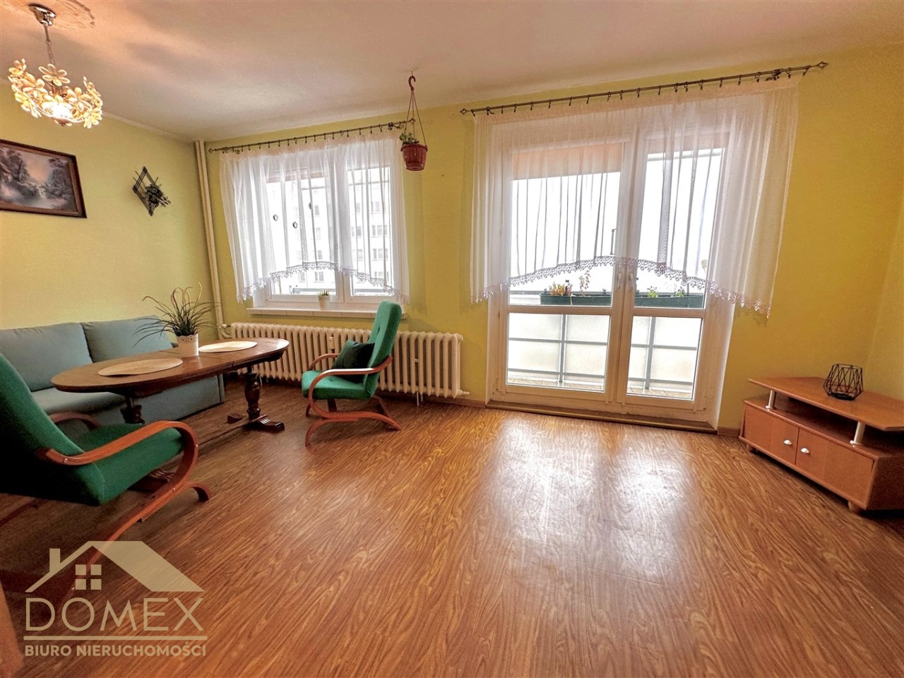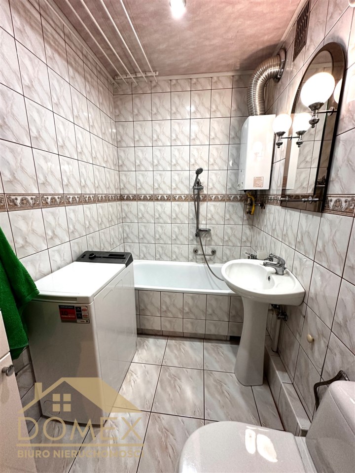 Oferujemy na sprzedaż funkcjonalne mieszkanie M-4 o powierzchni 58 m² z dużym balkonem, usytuowane na 5 piętrze wieżowca z windą. Lokal jest bardzo schludny i zadbany — nadaje się od razu do zamieszkania, ale świetnie sprawdzi się też jako baza do własnej aranżacji w zależności od preferencji klienta. Mieszkanie jest w pełni wyposażone: meble w salonie i sypialni, kompletnie urządzona kuchnia ze zmywarką, piecem i nową lodówką oraz pralka w łazience dzięki czemu mieszkanie doskonale nadaje się także jako inwestycja pod wynajem. Duże okna zapewniają dużo naturalnego światła, a z okien rozciąga się ładny widok na zieleń.