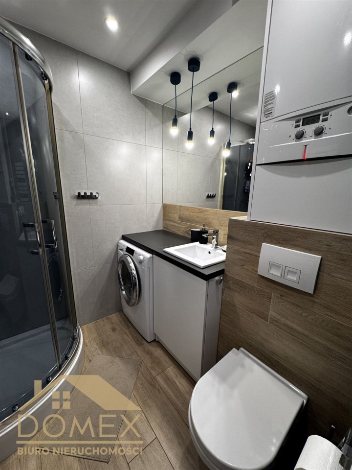 Łazienka z nową kabiną prysznicową oraz pralko-suszarką
